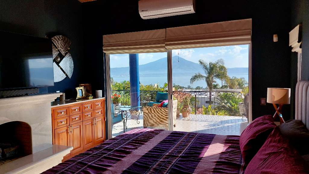 Welcome to Luxury Vistas a Unique and Prestigious offering, ideally located on a prime corner lot at the Raquet ClubThis fine home has been extensively renovated and completed in 2025, with an ideal combination of traditional and contemporary styles.This home features one level living with two living rooms, an office, sitting room overlooking a wall fountain and a designer gourmet kitchen.The designer kitchen boasts high end appliances and a generous seating area with exceptional Lake Views.The home further boasts two gas fireplaces, multiple skylights and multiple air conditioning units.Equipped with solar electric and a " Generac " generator for uninterrupted electrical supply.Stunning Lake Views and a walk-out to a generous covered terrace with privileged South views.Access your lower tier garden oasis by way of a staircase or private elevator.The garden area offers privacy in a beautiful oasis setting with solar heated pool and a newly constructed Cabana.Adjacent to this area is the fourth bedroom and bath, ideal for a caretaker or your guests while enjoying the pool.This fine home features natural stone perimeter walls, an intimate mature front garden area, sprinkler system, and so much more.The home is also offered with the majority of it's high end furnishings.Ask listing agent for further details on the extensive completed renovation projects .Show this home to your most discerning clients, they wont be disappointed.Listing agent must be present for all showings. Please allow sufficient notice.